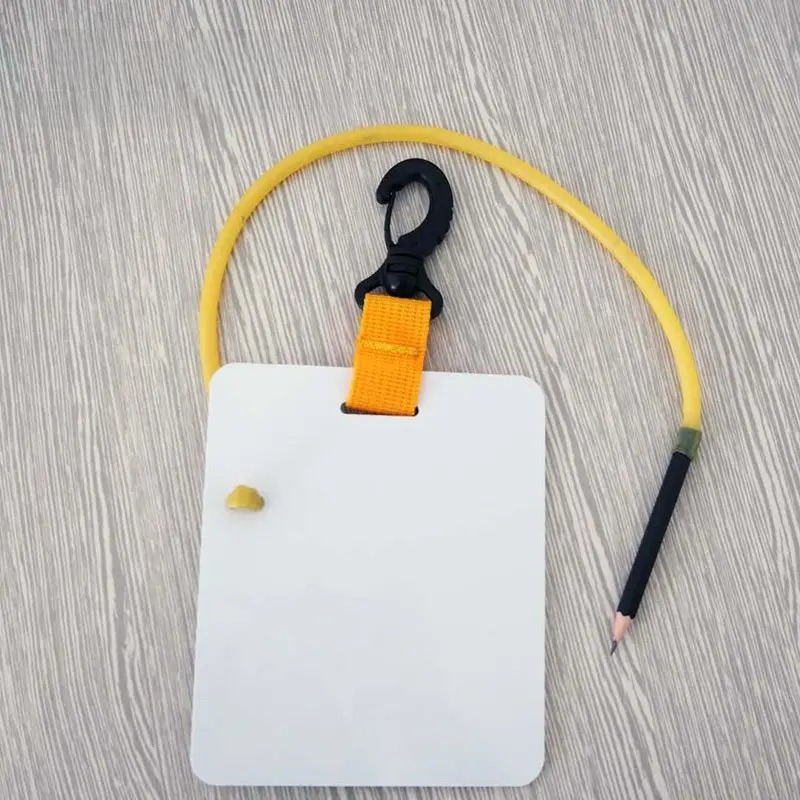 Ideal for recreational, technical, and professional divers, this reusable and easy-to-clean slate enhances underwater communication, improves dive safety, and helps divers log essential data. Whether noting dive site details or signaling a message, a diving slate is a simple yet indispensable accessory for any underwater adventure.
