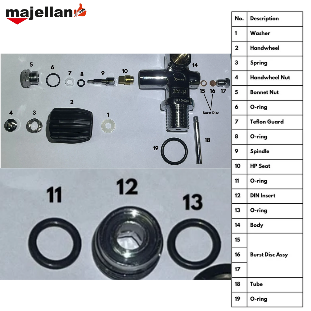 Handwheel: This component allows divers to open and close the valve easily, even with gloves on. It’s built for user convenience and reliability.